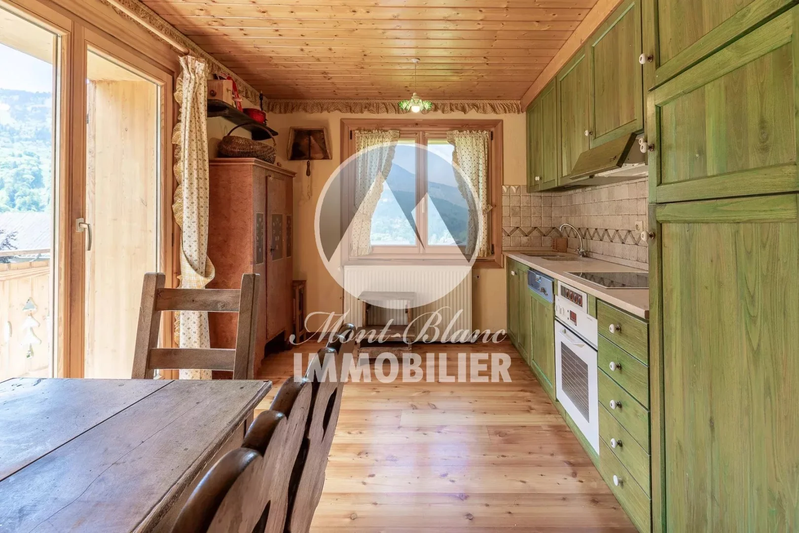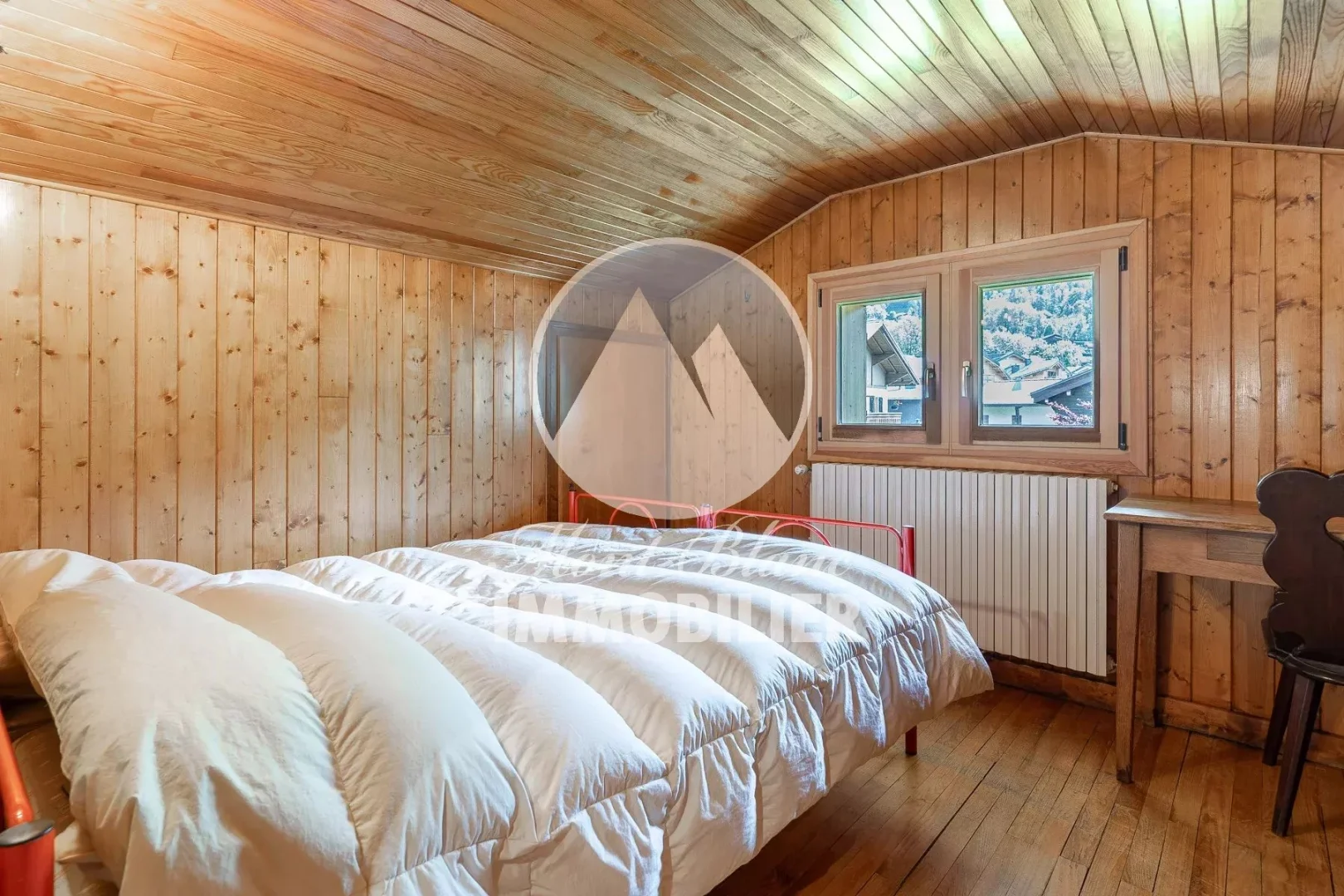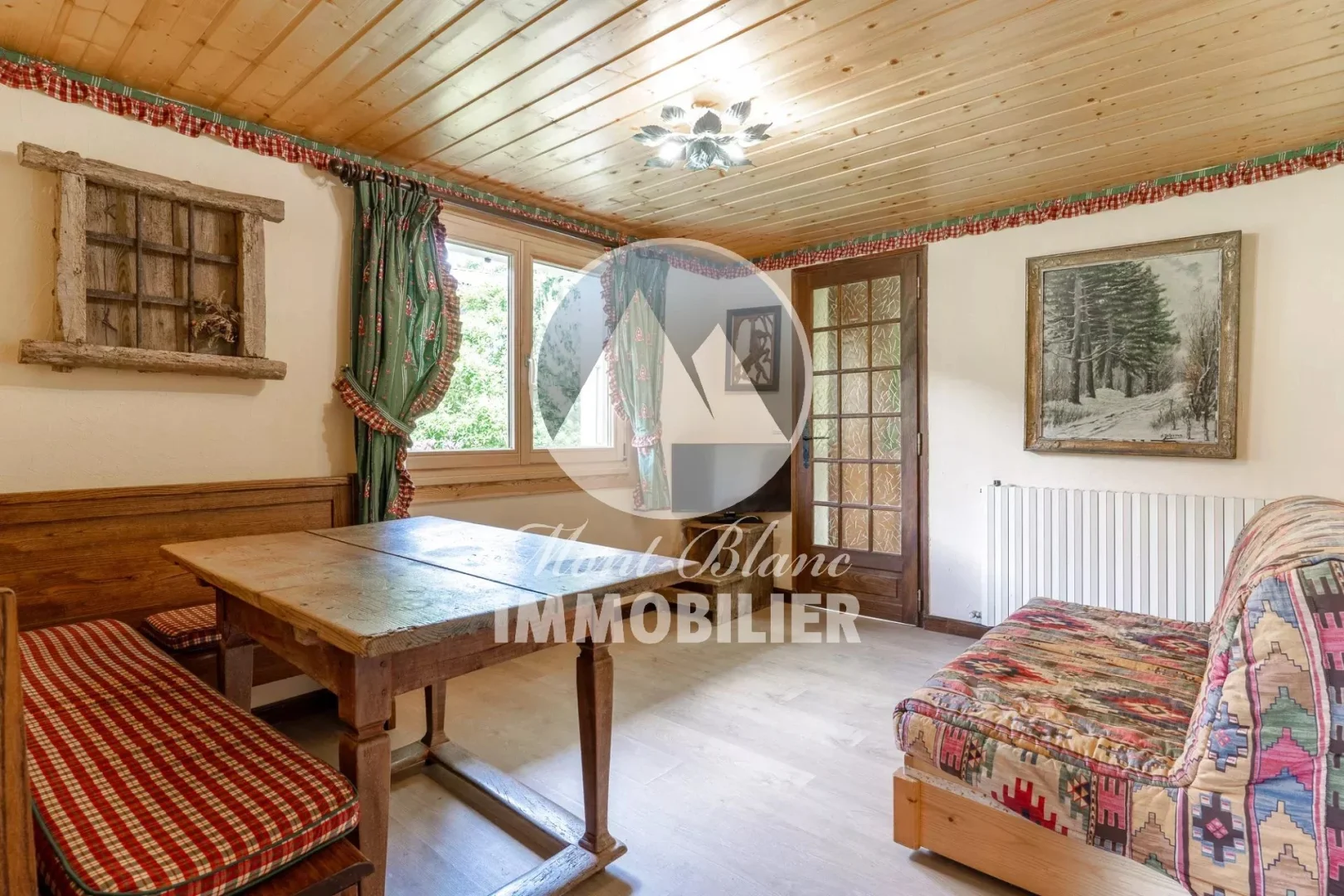 Centre des Houches, chalet de 190 m2 en surface totale dont 150 m2 habitables. Habitation sur trois niveaux implantée sur un un beau terrain de 1264 m2 pouvant accueillir un second chalet. Actuellement composée de deux appartements indépendants, le chalet se présente ainsi : Petit 2 pièces de 32 m2 avec séjour/ salle manger, cuisine séparée, une chambre, une salle d'eau et un wc séparé en rez de jardin. Au 1 er étage, appartement distribué sur 2 niveaux : une belle salle à manger /séjour ouverte sur balcon, une cuisine séparée, deux chambres, une salle de bain et un cellier. Au deuxième niveau deux chambres, une salle de bains et plusieurs espaces de rangement aménagés dans les combles.